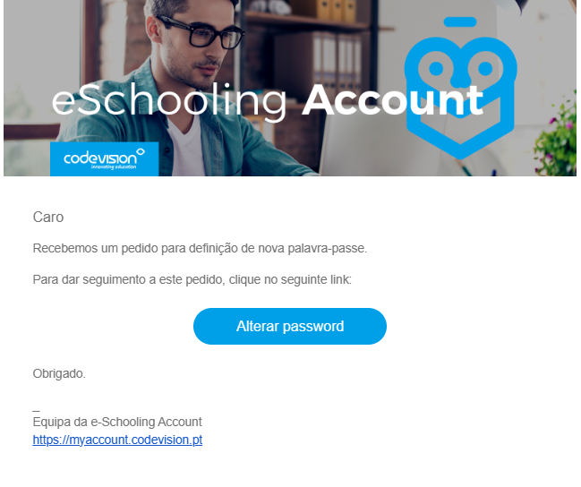 4. Aceda ao seu e-mail e clique em "Alterar password".
