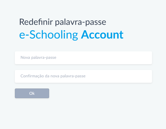 5. De seguida, será redirecionado novamente para a página da e-Schooling Account, onde deverá redefinir a sua nova palavra-passe.