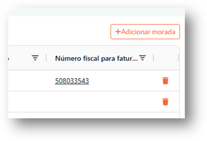 Para remover uma morada, deverá clicar no ícone de eliminar