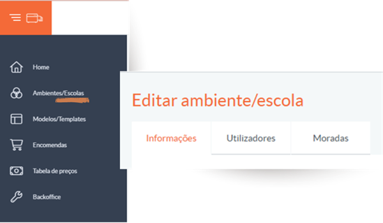 - Alteração da informação do ambiente/escola (ex.: moradas, dados gerais, etc.)